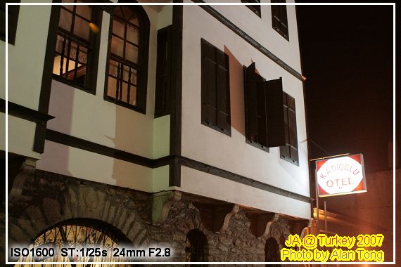 逛完街, 回飯店整理一下東西, 再去吃晚餐. 我們的飯店名稱叫 Kadioglu Sehzade, 不知道什麼意思, 可是番紅花城中不論是飯店還是餐廳, 都有叫 Kadioglu 的, 只差在招牌下方的號碼不大相同.