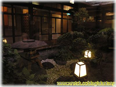 自在地坐下後, 才留意到在座位環繞中的日式庭院, 雖然不大, 但是十分美觀, 身處在古舊的環境, 眼看著精緻的造景, 飯, 還沒吃, 眼睛就快吃飽了.