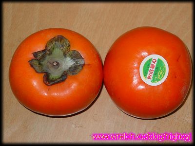 其實,我小時後並不喜歡柿子,但是對這種紅橙橙的水果就是有莫名的好感,因為小時候看到的柿子都是那種軟軟的小柿子,雖然長得很可愛,但是那時候覺得軟軟的口感很恐怖,而且皮好薄不好剝,所以對柿子是敬謝不敏的,但是仍然很喜歡這種可愛的水果,因為小時候爹媽買的螃蟹跟柿子的故事書裡,把柿子畫得可口極了,那時候翻那本故事書,總是花了不少時間在欣賞柿子。