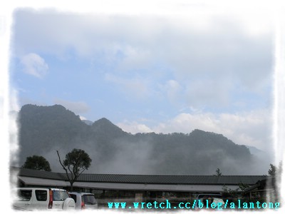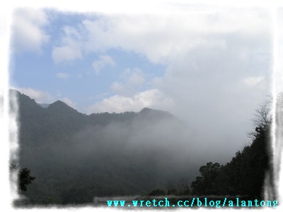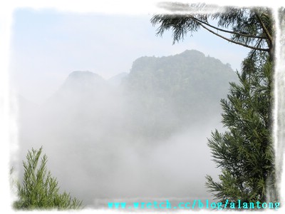 雲霧起時, 彷若巨浪蓋上孤島, 雲霧繚繞間, 直分不清是浪頭淹過了小島, 還是小島破開浪頭.
