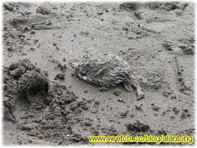 記得清境的牛屎黃嗎? 玩夠的 JAH, 準備回家之際, 跑在前頭的阿黃, 在地上找到什麼, 又突然滾了起來, 一時沒反應過來的 A, 慢慢走近, 才發現地上好像有什麼, 啊! 是死魚, 趕緊把在那滾來滾去的白毛蟲趕開, 可定睛一瞧, 差點把 A 的膽子給嚇破, 臭小黃居然在河豚上打滾, 天啊, 不過幸好到目前為止, 還沒看到臭小黃有中毒的跡象.