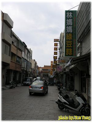 嘴裡膩膩的, J 本想直接離開, 不過不死心的 A, 堅持要再找正黃家看看. 福安宮前有正黃家立的指示牌, 上面畫的位置, 和剛剛看到的正黃家根本不同, 想來剛剛那家有可能是冒牌貨, 不過當我們順著福安宮前路口指標, 找到正黃家綠豆蒜的位置時, 卻發現那家店門口寫著已遷至新址, 新址就是原來我們以為是冒牌的那家...