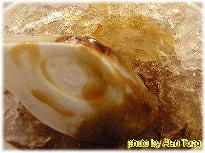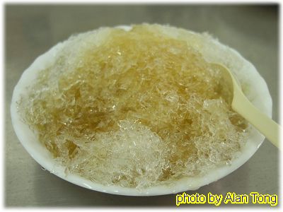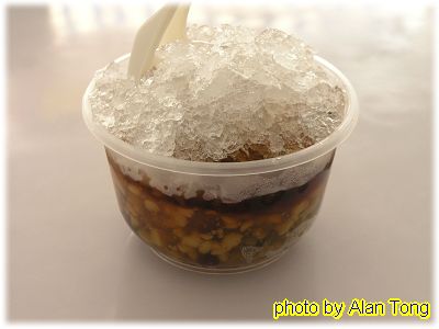 林媽媽綠豆蒜最有特色的, 是其"麥芽焦糖", 在加了冰的綠豆蒜上, 淋上半固態的麥芽焦糖, 帶點麥芽香, 帶點焦糖香, 風味香濃獨特, 果不枉是本店特色, 可惜的是焦糖味道太搶眼, 反倒嚐不出綠豆蒜的清香, 加上麥芽遇到冰, 黏乎乎硬梆梆, 不大化得開, 讓焦糖香無法均勻分布. 另外, 綜合的材料, 全就一碗碗盛好, 不知道是不是這個原因, 粉條變得一點也不 Q, 也沒有突出的味道, 和 J 一人一碗, 嚐完只覺得焦糖味有點膩, 卻得不到嚐完美食的滿足.
