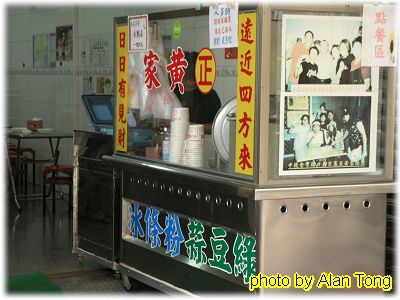 回程買正黃家時, 老闆正戴著藍芽耳機講著電話, A 點熱的, 卻猛作冰的, A 及時制止, 老闆已做二碗冰的, 好性格的 A 跟老闆說不要緊, 其他做熱的就行了, 老闆當然無所謂, 另作了五碗量多的熱綠豆蒜加粉條. 不過老闆自始至終和他的藍芽耳機講得如火如荼, 做錯了連點個頭或中斷一下表示歉意也無, 東西好吃, 服務態度卻令人心寒, 早知如此就要老闆七碗全重做. 反倒是前一天來買時, 服務的小妹態度較正常. (熱的同樣是 25, 把冰的部份換成綠豆蒜, 要是外帶, 買熱的回家冰, 份量多很多.)