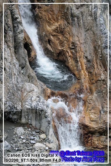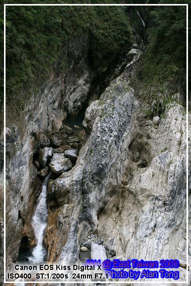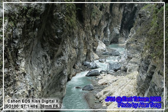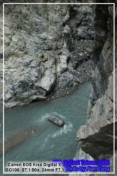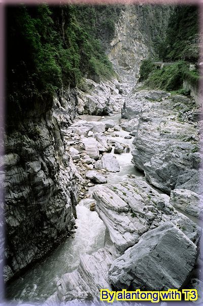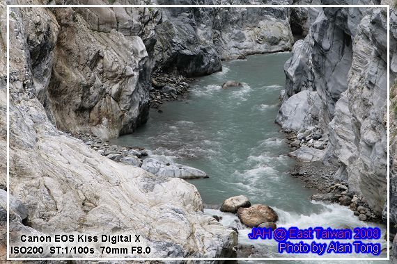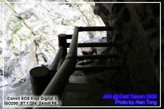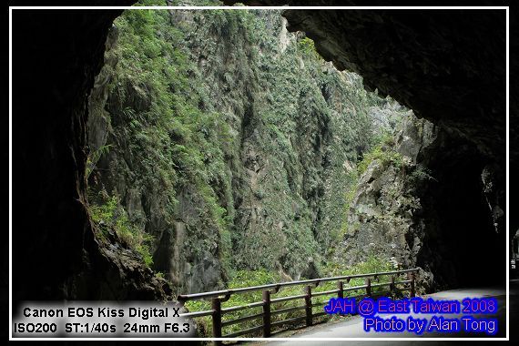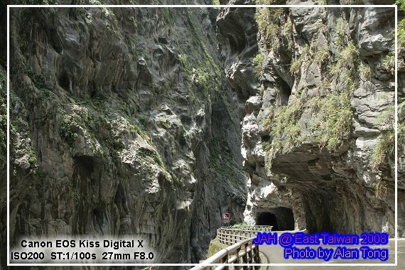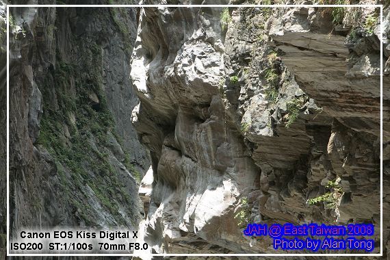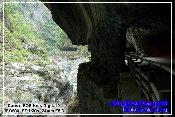 旅行團的遊覽車, 已在九曲洞的另一頭守候, 散客的 JA, 只好循原路, 慢慢走回, 不過多走一次也無妨, 畢竟九曲洞旁的景色, 氣勢驚人, 多看幾次也無妨. 而且下午將進花蓮市區前, A 還特地拿了裝上底片的相機, 再走了小半趟九曲洞呢.