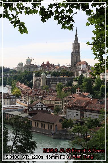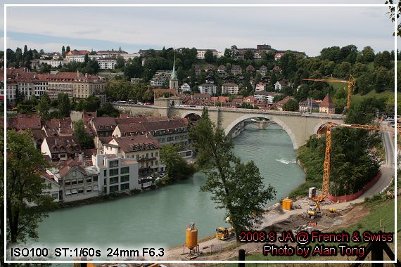 順著熊公園後方的斜城一路向上, 能眺望伯恩的街景. 高踞河谷的橋樑, 整片紅色的屋瓦, 可惜河谷旁正在施工, 拍出來的照片總覺得美中不足.