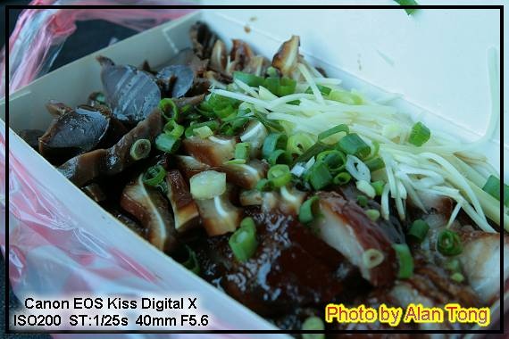 聞名的豬皮, 因為膽固醇的緣故, 實在不敢一試, 不過看來差不多的三層肉, 真的嚐來有東坡肉的感覺, 尤其是在油脂肥美的部份, 香氣濃郁, 口味甘美, 入口即化, 實在好吃. 吃著三層肉的油脂部份時, 真有下次要點豬皮的衝動, 幸好吃下去後, 衝動漸漸淡掉.