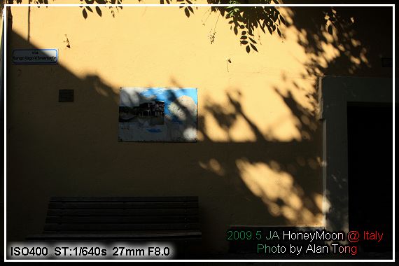 等待上船的碼頭邊, 有不少紀念品小賣店. 說也有趣, 在義大利, 除了明信片, 當地特產外, 還有一種幫遊客織名字的小店, 熱門的地方, 常常縫紉機的聲音不絕於耳, 只是這早晨, 縫紉機也安靜地休息, 以保持這寧靜的氣氛.