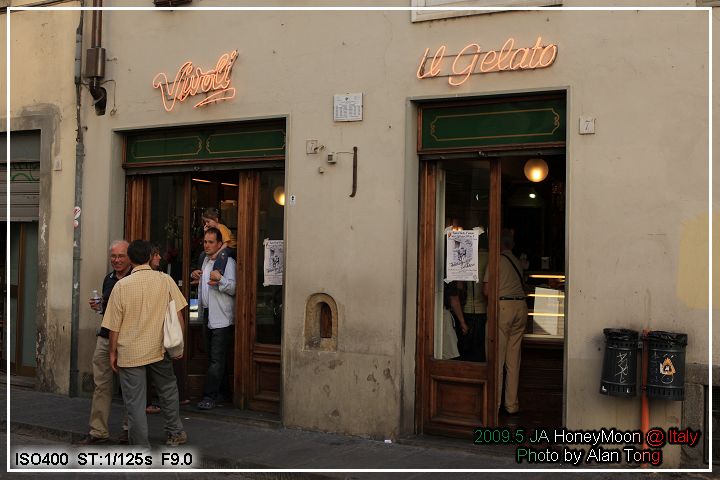 穿過烏菲茲美術館後方的巷弄, 原以為找不到了, 沒想到在轉角, 哈! 那人群聚集處, 可不正是 Vivoli 嗎?
