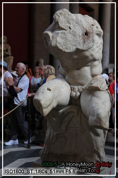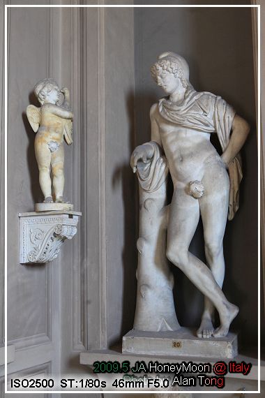 最後, 這篇遊記的結尾來點特別的. 不知道大家看過天使與魔鬼沒有, 那整條長廊的男丁們, 重要部位全被"剁掉", 而以無花果葉取而代之的場景想必大家猶有印象. 這就是丹布朗描述, 由教宗 Pius 九世 ( 1857, Pope Pius IX ) 下令造成的大去勢. 不過砍壯漢的就算了, 砍小天使的...