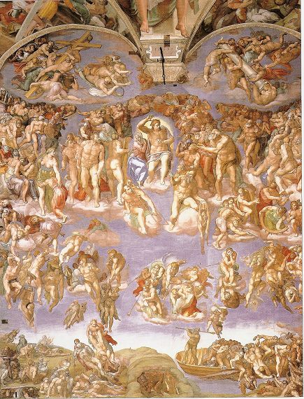牆上深藍背景上, 是米開朗基羅花了 25 年時光完成的"最後的審判".