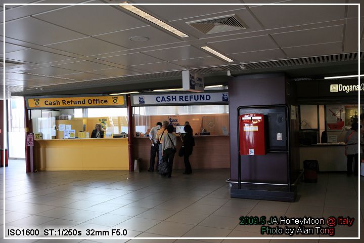 二個步驟都檢查完, 終於可以去領錢了. JA 到歐洲多趟, 羅馬機場的退稅檢查, 是我們看過最仔細的, 想來他們的稅務人員也知道大家到了義大利, 總是難免大包小包呀.