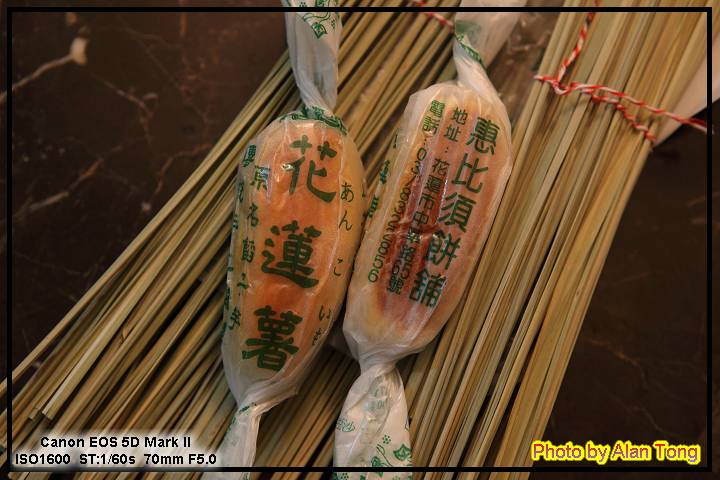 另外, 今年還買了紀念包裝, 就是用稻草包上花蓮薯, 老闆說要放三天再吃, 讓稻香滲入花蓮薯裡, 更增美味. 可惜的是, A 多放了二天, 雖說有一股田野中的稻香, 可是花蓮薯的水份和油脂也被稻草吸了出來, 使得口感太乾, 如果提早一兩天吃, 水份沒跑那麼多出來, 想必不錯吃.