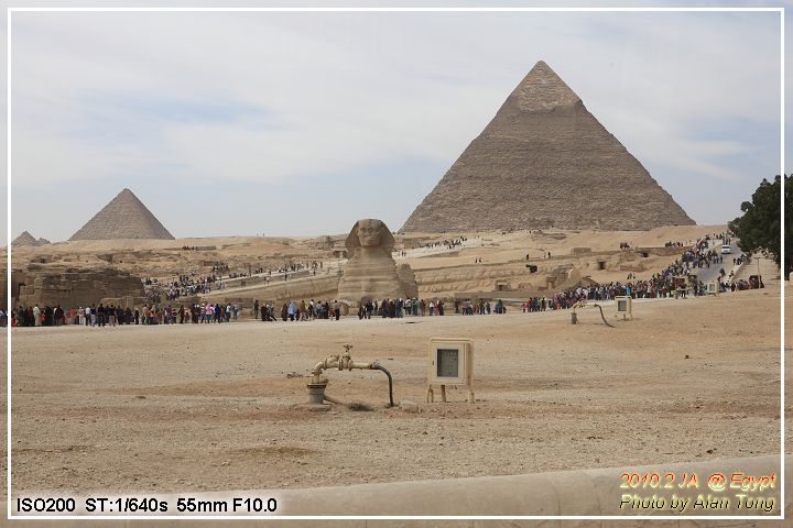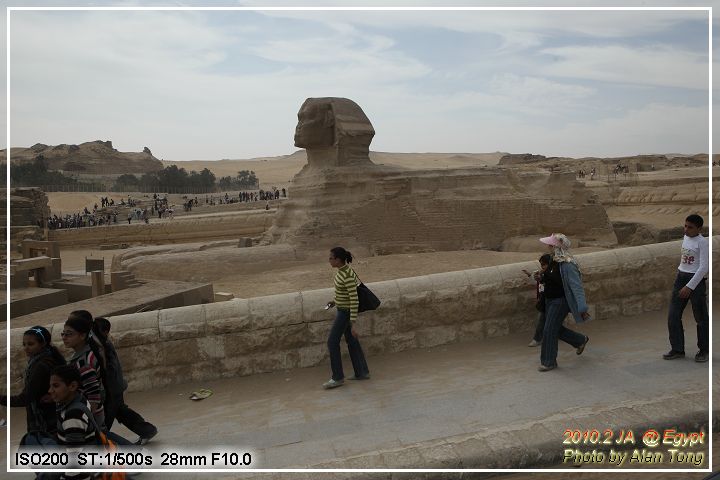 人面獅身, 是我們在吉薩金字塔區的最後一個景點. 雖然第一天, 剛坐完長程的飛機, 不過雄偉的金字塔, 人面獅身, 構造複雜的太陽船, 都讓人留下深刻的印象.