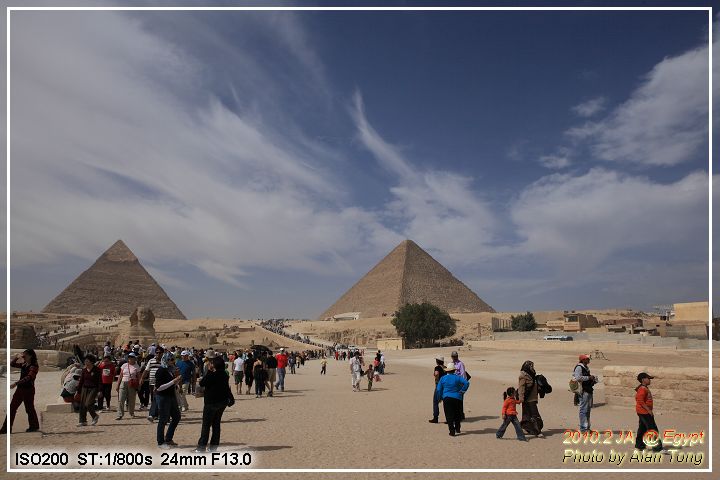 在歲月的洪流裡, 人面獅身的鼻子不知被誰弄了下來, 而人面獅身似法老的鬍子, 也已漂洋過海到了大英博物館繞上一圈再回埃及. 前方除了神殿之外, 更是多了一區, 集結了各色小販.