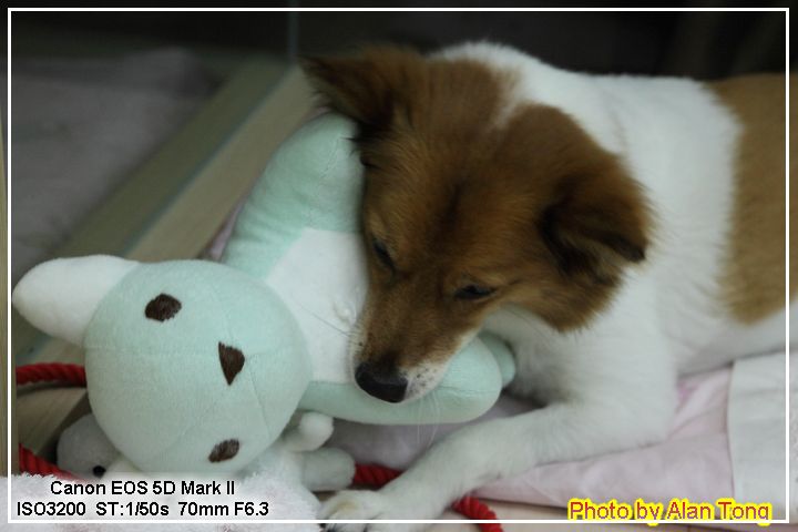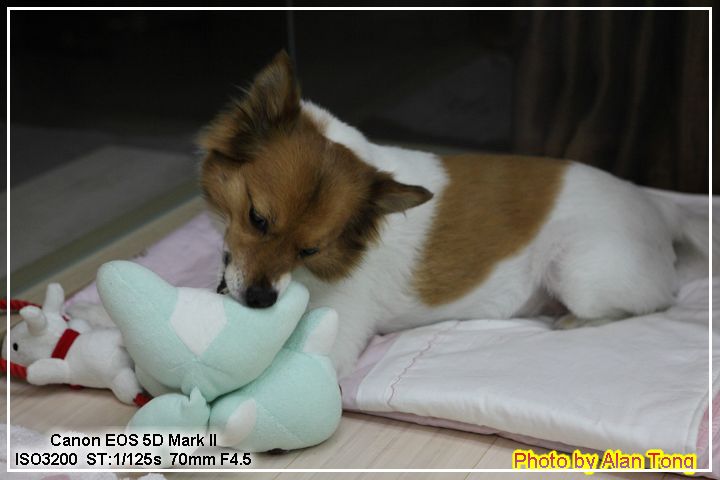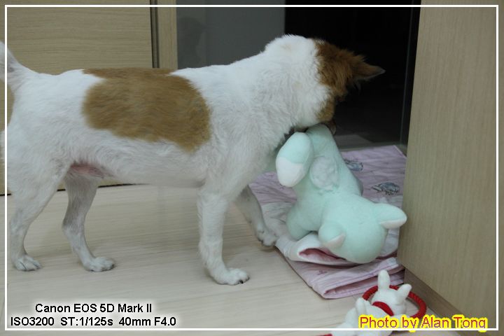 J 帶回來一隻粉嫩嫩的小狐狸狗, 不只粉嫩嫩, 後腳壓一下, 還會唱歌唷!