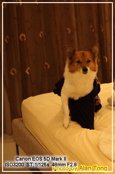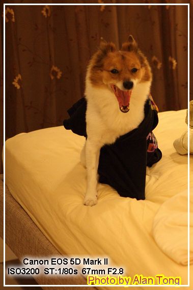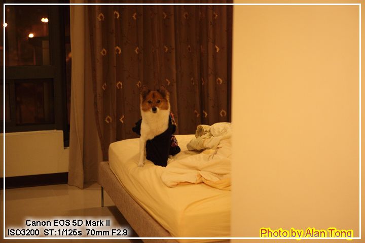 上次 J 下午到家, 黃小豬在床上睡覺, 這回晚上到家, 小豬才睡醒, 黃小豬根本是都在主臥床上睡覺吧!