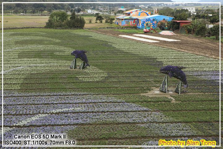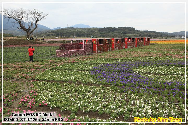 飯後, 當然要去逛逛花海! 海豚造型的圖樣, 彷彿在波浪中舞動. 雖然其他花朵開得並不算及時, 有些未開有些有點開過頭略略枯萎, 不過大片的造景, 配合小火車道具, 還是蠻吸引人的.