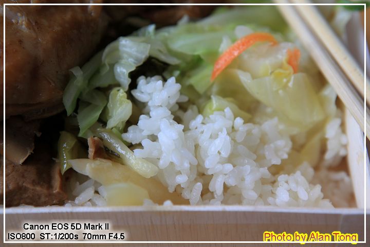 J 點了排骨和雞腿, 滷排骨很香很入味, 口感柔軟, 很不錯吃. 上次被買光的雞腿這次終於吃到, 不過口味還好, 我們還是喜歡排骨的滋味. 不過農會便當最棒的還是飯呀~ 米飯粒粒分明, 光吃飯都能嚐出滿滿的飯香.