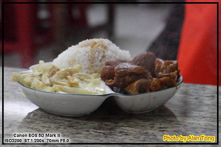 二個人這麼吃實在有點多, 後來發現鄰桌居然有個像豬腳飯的菜色, 不知是否為非觀光客專屬菜色, 或許下次可以問問有沒有豬腳飯, 不過想到要問臭臉店員菜單上沒有的菜... 嗯, 再說吧.