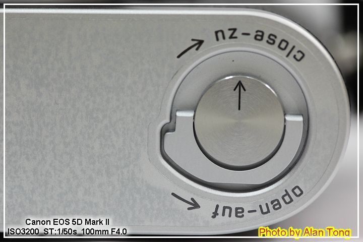 MP 最特別的一點, 就是正面很低調, 沒有 Leica 著名的紅色可樂標! 雖然有同事說, 花了大錢, 沒有可樂標哪說得過去! 不過沒有可樂標, 出門就少了被盯著瞧的機會, 也可免除一些不必要的風險吧!