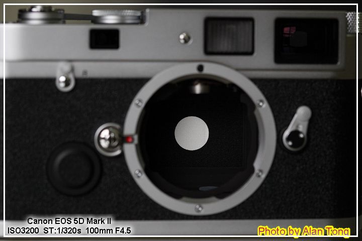 過片後, 測光才會啟動, 卸下鏡頭能看到反光區, 是中間的小圓點, 所以 Leica MP 的測光, 應屬中央測光.