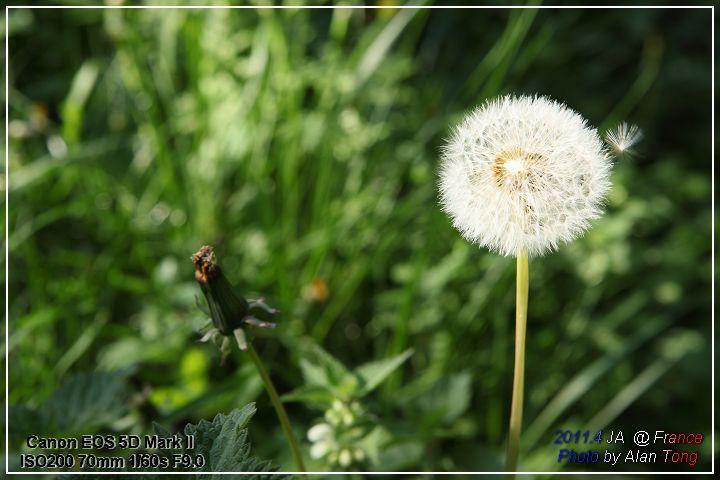 往城堡的小徑上, J 吹起, 如首日心情, 準備飛揚的蒲公英.