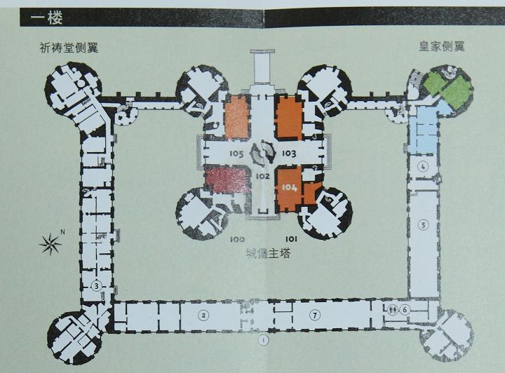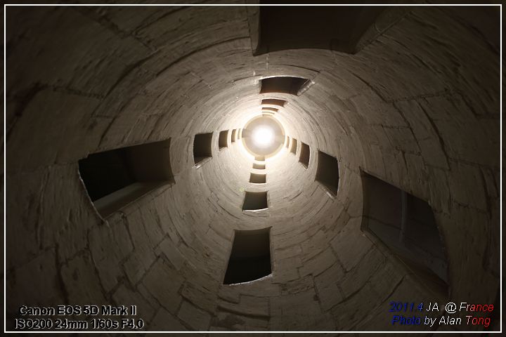 順著雙螺旋梯, 一層層走過國王的房間, 王后的房間, 到達天台.