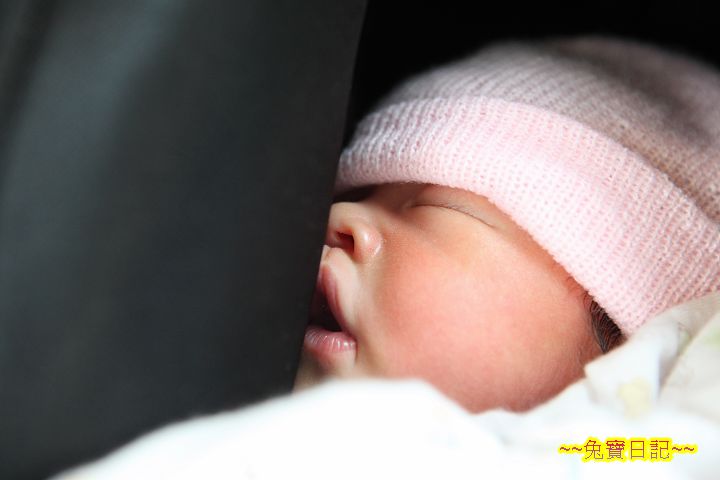 雖然前一天猛 K 安全座椅怎麼用, 不過阿乖剛上車還是哭了好一會. 常在路上唸人家是烏龜車的 A, 往月子中心開的路上, 要是遇上了之前被 A 唸的烏龜車, 大概也會被烏龜車抱怨是超級烏龜車吧! 沒辦法, 阿乖在車上呀! 深怕不小心壓到了坑洞, 或是轉彎轉太急, 讓出生才六天的阿乖受到傷害, 於是愈開愈慢, 油門也愈踩愈輕...