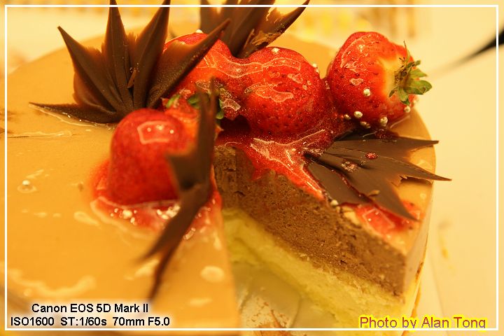 在指定的時間, 生日蛋糕送到了房間! 雖然是不很愛的慕斯, 不過草莓酸酸甜甜, 蠻好吃的.