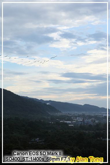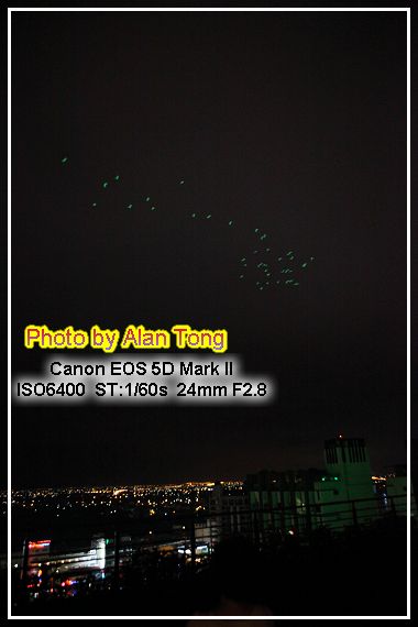 這次去沒下雨, 晚上有開放頂樓看夜景! 當天攝影同好不少, 架腳架長曝拍個多張者有之, 要求同伴站好不動, 大家五六台輪番拍照者有之, 只好看準空檔, 拍個幾張了事. 有趣的是, 當天晚上有群大鳥由遠而近飛了一大圈.