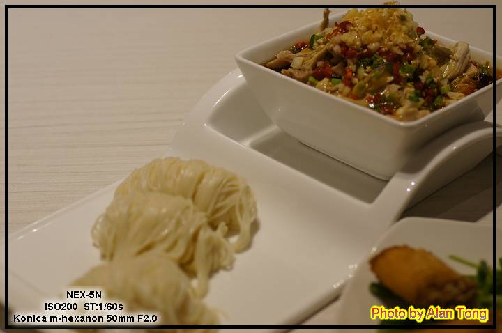 口水雞(NT300)是以前最愛的重口味之一, 冰涼的溫度裡, 卻是火辣辣的滋味. 附上三圈冰涼的麵線, 淋上香辣的醬汁, 麵線柔軟, 雞肉軟中帶點雞腿筋的脆, 好吃. 麵條配完, 淋上白飯, 也是超棒.