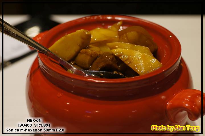 以前 J 最愛的外婆的紅燒肉( NT480 ), 該怎麼說呢... 嗯, 每個人的外婆都不一樣, 所以外婆的紅燒肉自然也不同, 之前帶點甜味, 裡頭有大腸, 有一隻小章魚, 不過甕裡還有小盅, 份量不多但是很好吃的紅燒肉不見了, 取而代之的是真材實料, 全甕裝滿, 但卻是口味一般般, 肥肉還帶油味的筍子焢肉... 嗯, 這位大廚外婆的口味和 JA 不合.