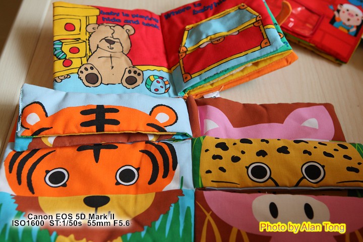 總之, 撕不破, 口水浸不爛, 玩起來有聲音, 弄髒還了還能丟洗衣機的布書, 對小小孩來說, 是很不錯的入門書. ( PS. 嬰兒用品店幾乎都會賣. )