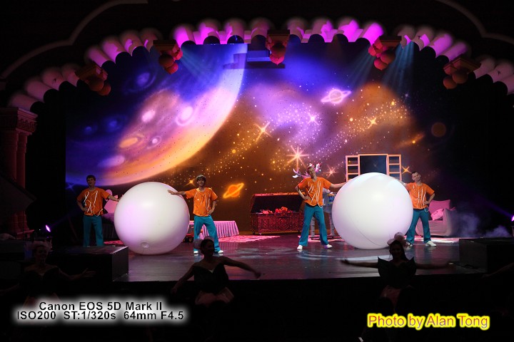 原擔心乖乖看不下去會大鬧, 不過是多慮了, 小小孩看得好專心好專心, 全場唯一哭鬧, 是節目進行到白老虎在椅子上睡著時, 乖乖指著白老虎說不要不要, 一副要白老虎不准睡, 起床陪他玩的樣子. 可乖乖呀, 這場秀就是白老虎的奇幻夢境, 老虎不睡, 就沒有秀啦!