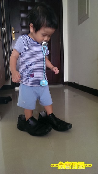 於是, 有時乖乖心血來潮, 就會到鞋櫃拿 JA 的鞋子, 自個兒穿得很開心... 尤其是 A 的皮鞋, 乖乖是真的可以穿了在家裡走上好幾公尺呢!