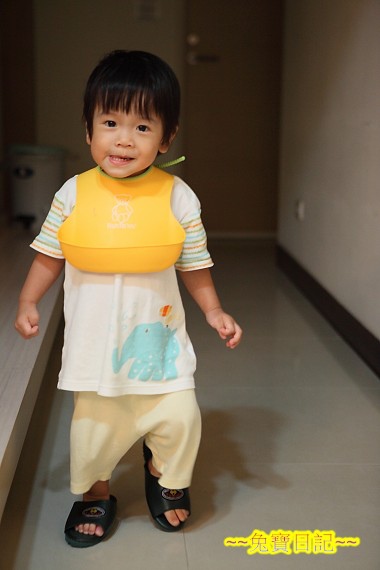於是, J 的拖鞋, 每天起床, 總是會跑到別的地方去. 因為早起的乖乖, 總是會溜進主臥穿了鞋子逛大街. ( 照片是 J 的外出鞋 )