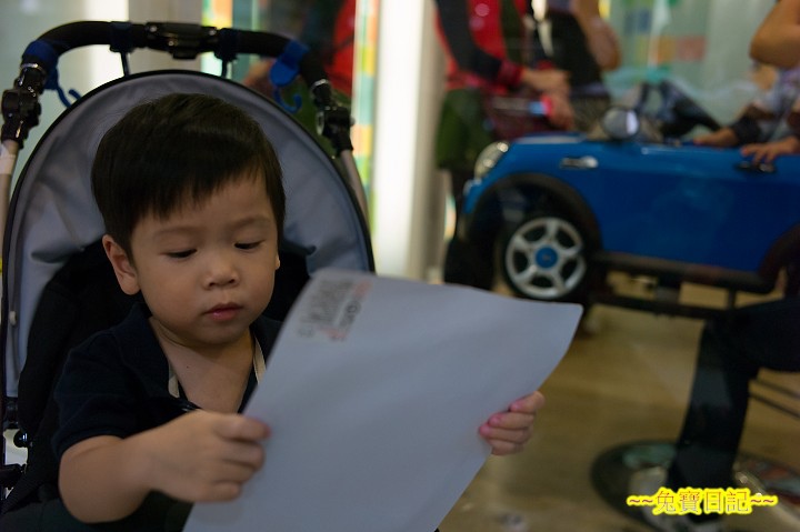 "來, 車上有排檔, 方向盤, 喇叭, 還有油門唷~” 被泡泡逗笑的乖乖, 一副興味昂然地樣子, 聽著 Zoe 解說那台當座椅的車子, 可真要乖乖坐上去, 馬上又是大喊不要, 怎樣就是不上車.