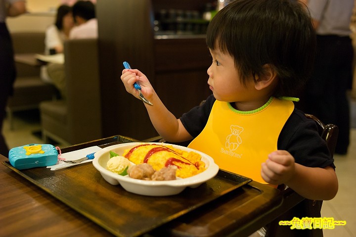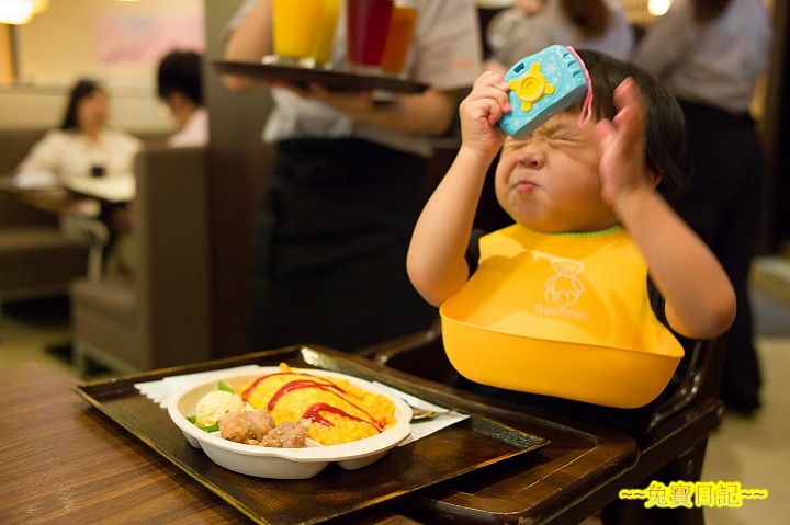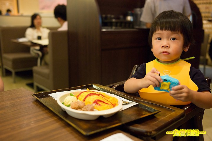 乖乖選了個玩具相機, 裡頭有小幻燈片, 按下快門可以換張. 乖乖玩得頗開心. 老樣子, 兒童餐乖乖是不碰的( 下次不點了! ). 不過邊玩邊吃, 也吃了點東西.