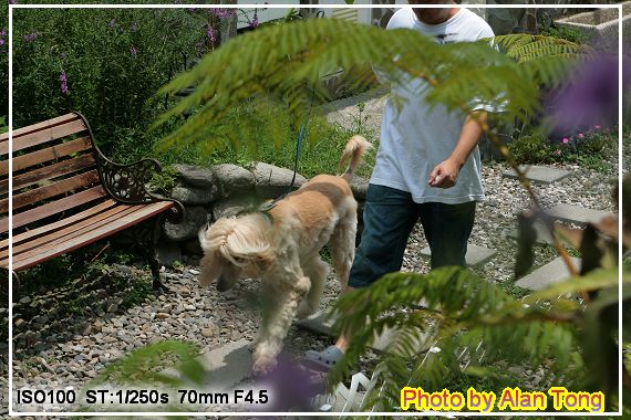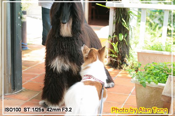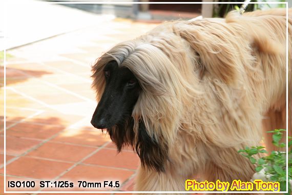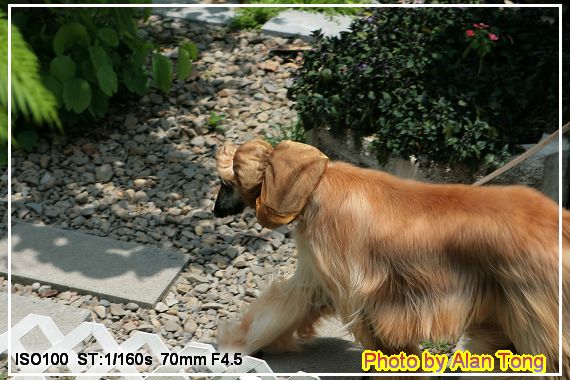 HERO 解放行動完成後, 只見得老闆走入室外房間, 咦, 又牽了一隻出來, 一隻一隻又一隻, 就像變魔術般的由室內變出了一隻隻的阿富汗獵犬, 實在太令人吃驚了. 坐在廊上看著一隻隻的美麗阿富汗獵犬, 由設計過的庭院經過, 是蠻特別有趣的經驗.