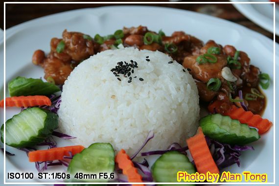餐點種類不多, 不會太難選, A 點了宮保雞丁飯, J 則點燻雞腿餐. 在等待餐點的當兒, 重要的事情, 當然是拎著相機, 到屋內看看到花想容用餐的主要目的 : 阿富汗獵犬.