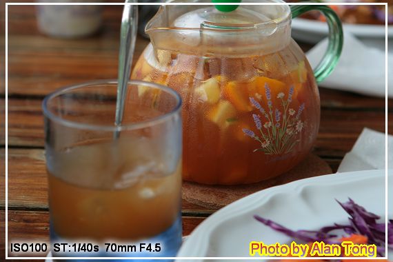 主菜的宮保雞丁, 辣中帶甘, 燻雞也十分入味, 不過都有點鹹. 餐後的飲料也沒什麼特別之處, 倒是 J 加價換點的冰水果茶, 看起來一副又冰又涼又好喝的樣子, 吸引大家的目光, 而口味也的確是冰涼美味.