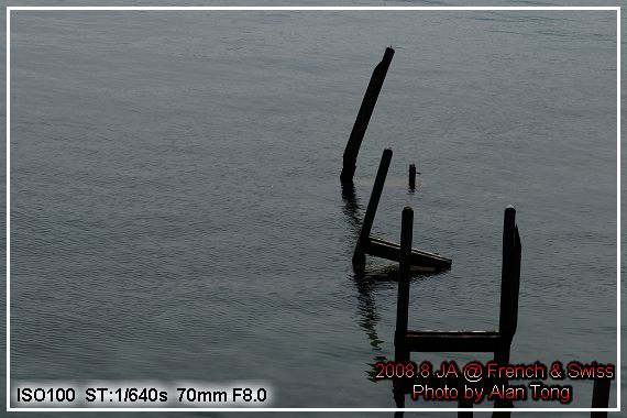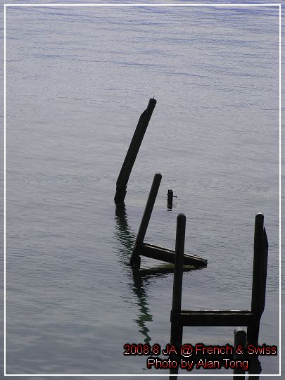 進入Chillon 古堡前的碼頭, 破落的木架, 呈現一種歷史的美. ( 底下這張是 J 拍的 )
